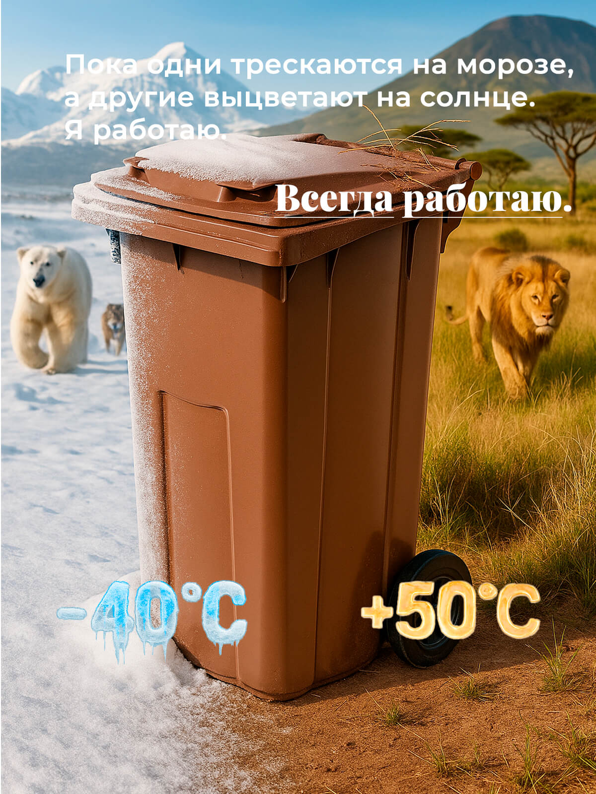 Контейнер для мусора 120 л на колёсах с крышкой, коричневый — надёжное решение для поддержания чистоты на улице и территории
