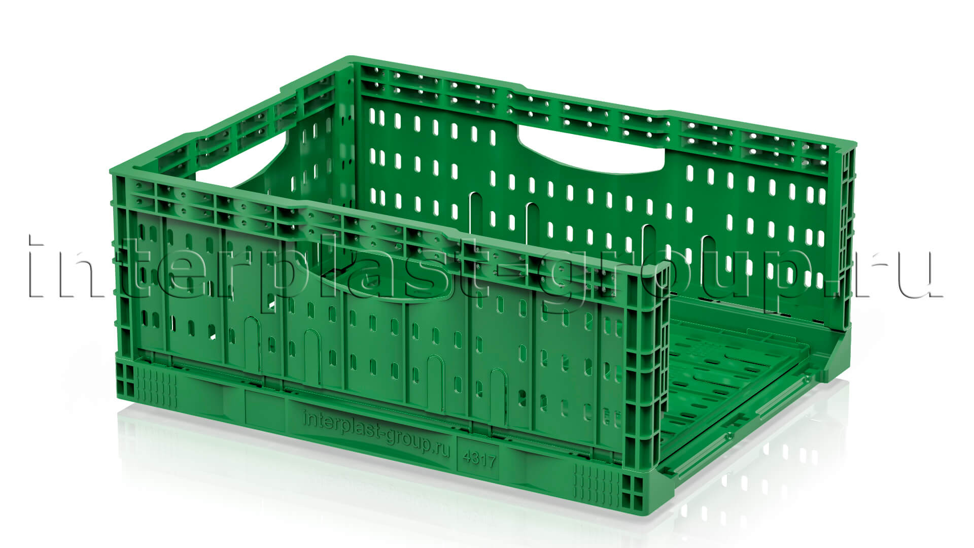 Складные ящики разработаны и спроектированы для хранения и перемещения плодо-овощных культур как внутри производства, так и между торговыми точками и складами. Благодаря функции складывания значительно экономят место при использовании в качестве возвратной тары. Перфорированные стенки обеспечивают сохранение свежести и сочность продуктов перфорации абсолютно на всех стадиях логистики. Штабелируются на паллетах 1200х1000 и 1200х800.