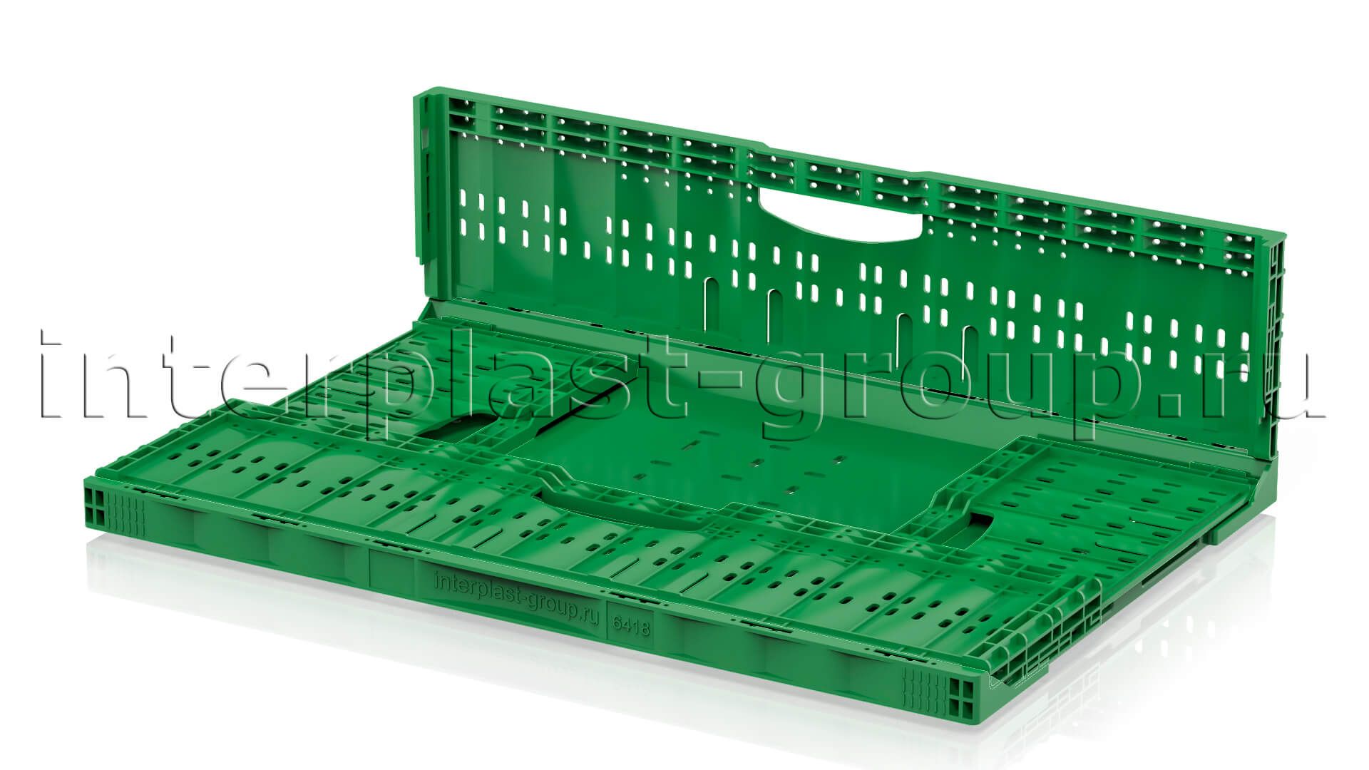 Складные ящики разработаны и спроектированы для хранения и перемещения плодо-овощных культур как внутри производства, так и между торговыми точками и складами. Благодаря функции складывания значительно экономят место при использовании в качестве возвратной тары. Перфорированные стенки обеспечивают сохранение свежести и сочность продуктов перфорации абсолютно на всех стадиях логистики. Штабелируются на паллетах 1200х1000 и 1200х800.